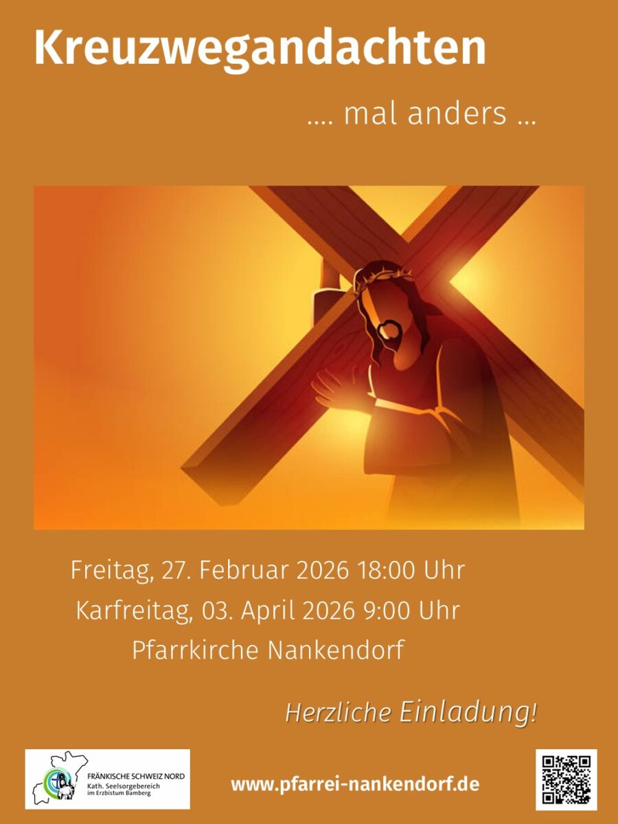 Herzliche Einladung zur Kreuzwegandacht am Karfreitag, 03. April 2026 um 9:00 Uhr in der Pfarrkirche Nankendorf.